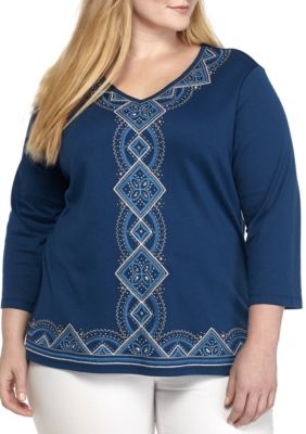 Alfred Dunner Applique Knit Top | Blouses & Tunics ... from www.shopmyexchange.com Alfred dunner's brand is all about delivering superior sportswear of great quality and comfort. Shop women's plus size knit tops at alfred dunner! Sold & shipped by alfred dunner. Alfred dunner plus size top in silver. Also set sale alerts and shop exclusive offers only on shopstyle. Alfred dunner® plus size 18w acapulco burnout layer look top nwt $62. Plus size briggs short length millennium tech pull on pants. Shop 84 top alfred dunner plus size tops and earn cash back from retailers such as macy's all in one place.