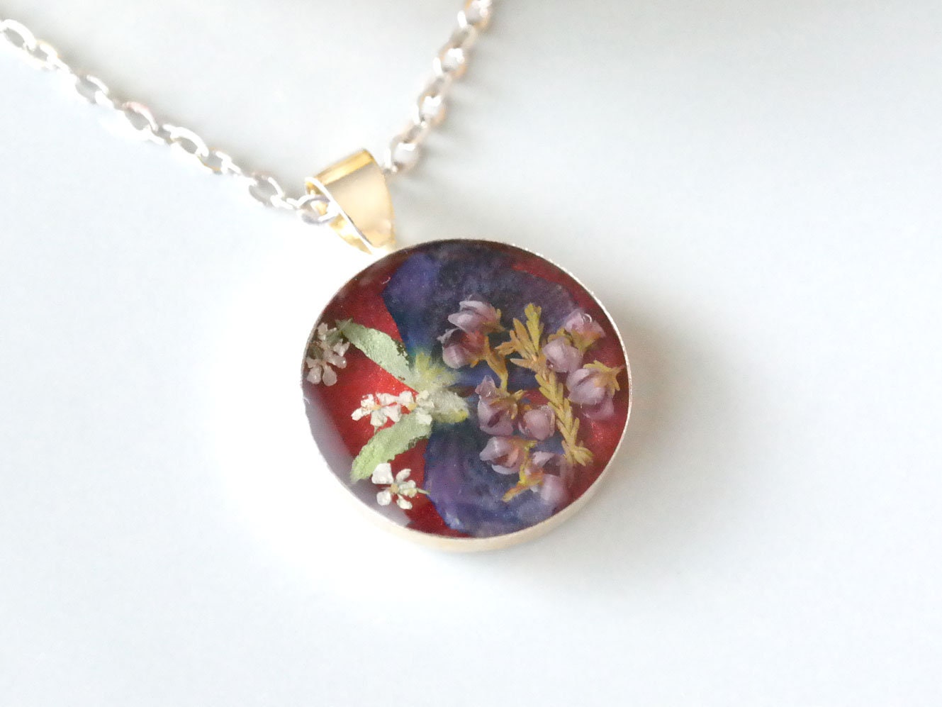Flowers In Resin Necklace - Queen Anne's Flower Necklace, Resin Jewelry, Romantic ... : Hydrangea jewelry,resin jewelry,resin earrings,resin necklace,real pressed hydrangea,pressed flowers.. Pressed flower resin silver necklace. This opens in a new window. Read our detailed instructions on epoxy resin casting and watch our video tutorial. But how to do that?resin is a great way to preserve different things. These necklaces are handmade with real pressed flowers encased in resin.
